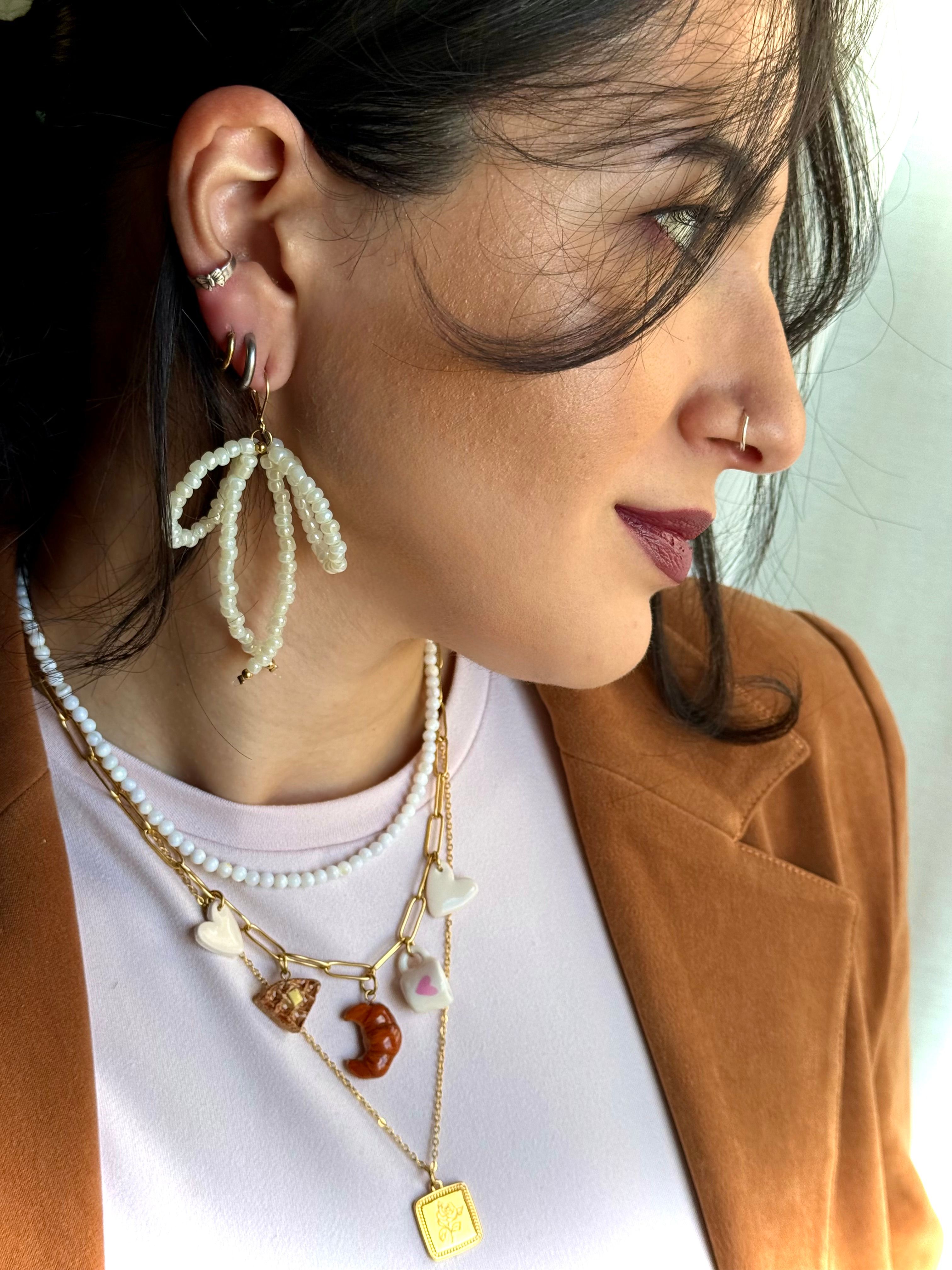 Τα Beaded Bow Earrings είναι το ιδανικό ζευγάρι σκουλαρίκια για να σε συνοδέψει από το πρωί στη δουλειά, σε έναν καφέ και σε μια βραδινή έξοδο. Θα δώσουν στο outfit σου αυτό το je ne se quois που δεν ήξερες ότι χρειάζοταν!
