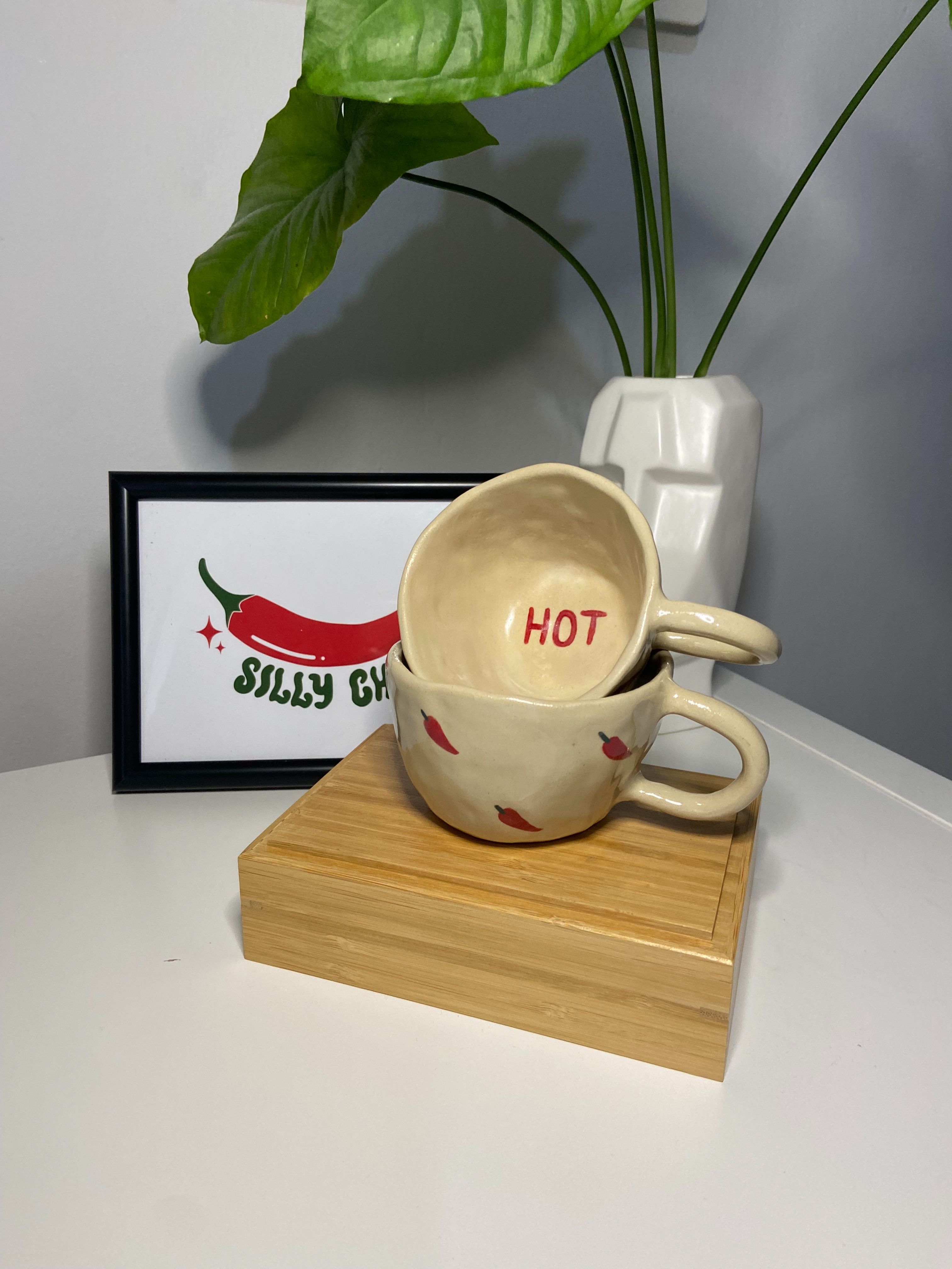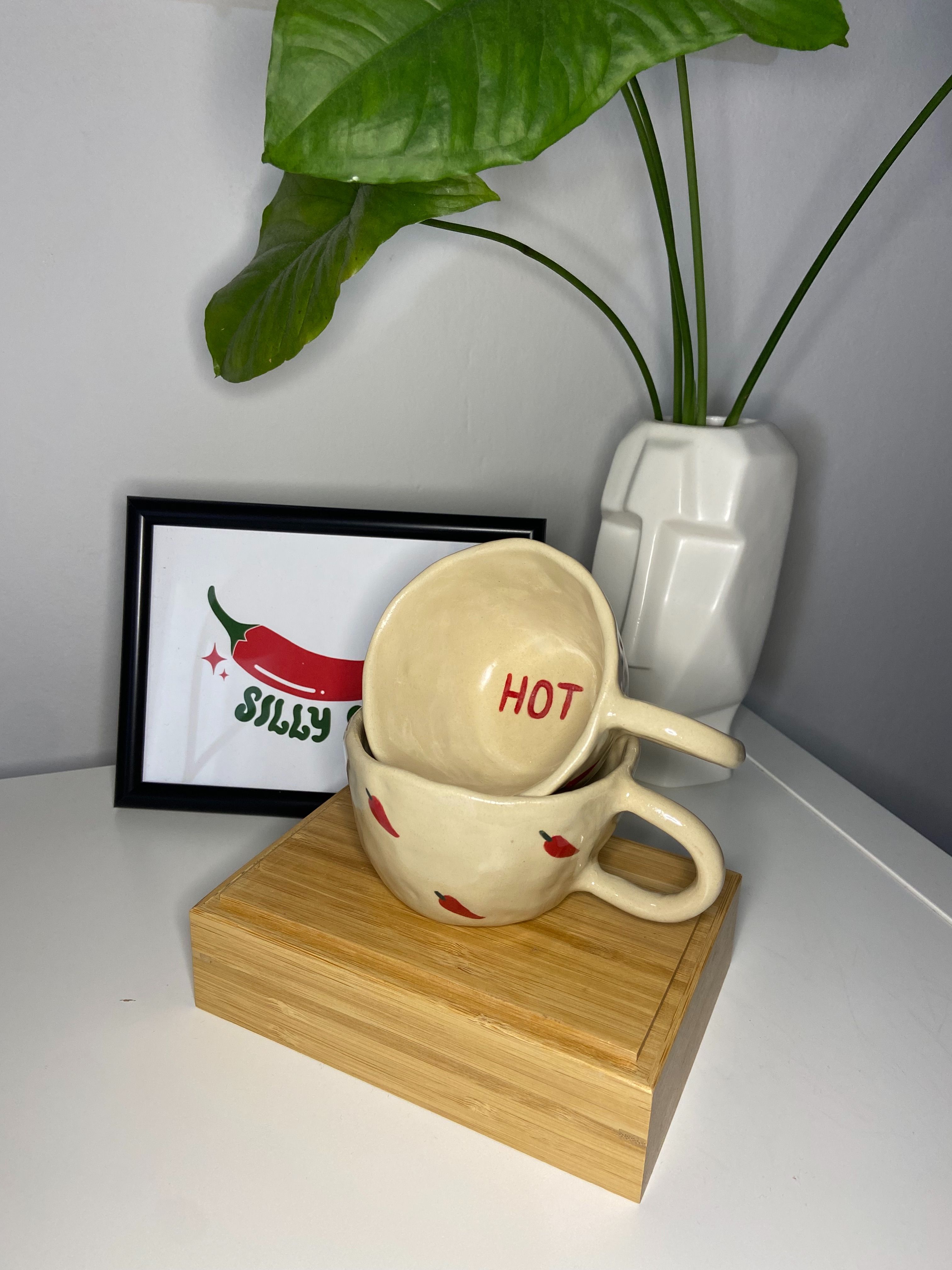 Αυτή η χειροποίητη κεραμική κούπα του Silly Chili είναι πιο hot από ποτέ: διακοσμημένη με παιχνιδιάρικες πιπερίτσες, στον πάτο της σου κρύβει ένα μικρό "hot" μυστικό μόνο για σένα. Ιδανική για americano, τσάι ή κακάο ή ό,τι σε κρατάει... spicy!