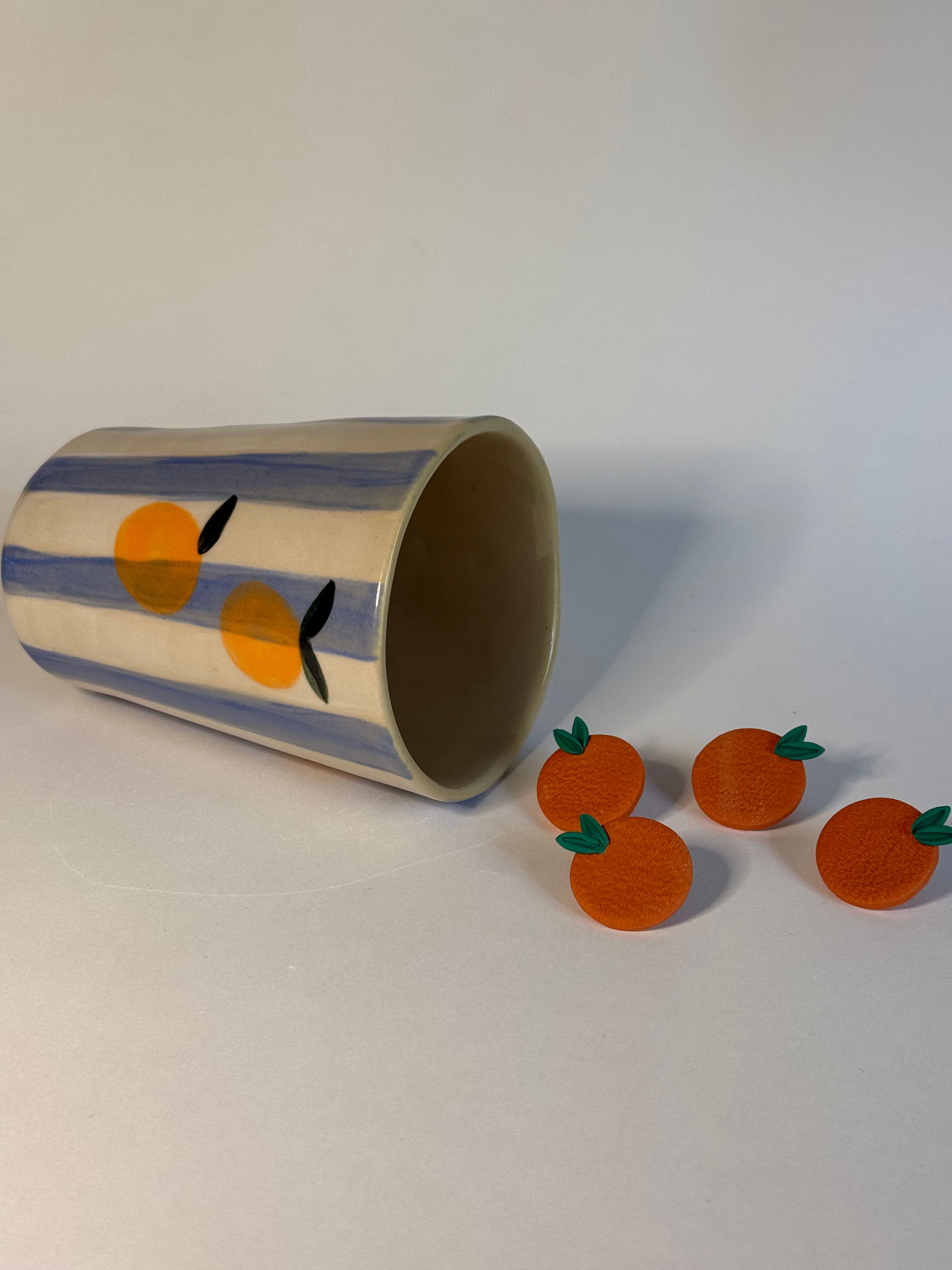 Τα Orange Zest Earrings είναι χειροποίητα σκουλαρίκια με παιχνιδιάρικη μορφή πορτοκαλιού και bold χρώμα. Είναι ελαφριά και άνετα, το τέλειο αξεσουάρ για βόλτες στον ήλιο, brunch με φίλες ή για να φέρεις λίγη vitamin C ενέργεια ακόμα και στις πιο μουντές μέρες.