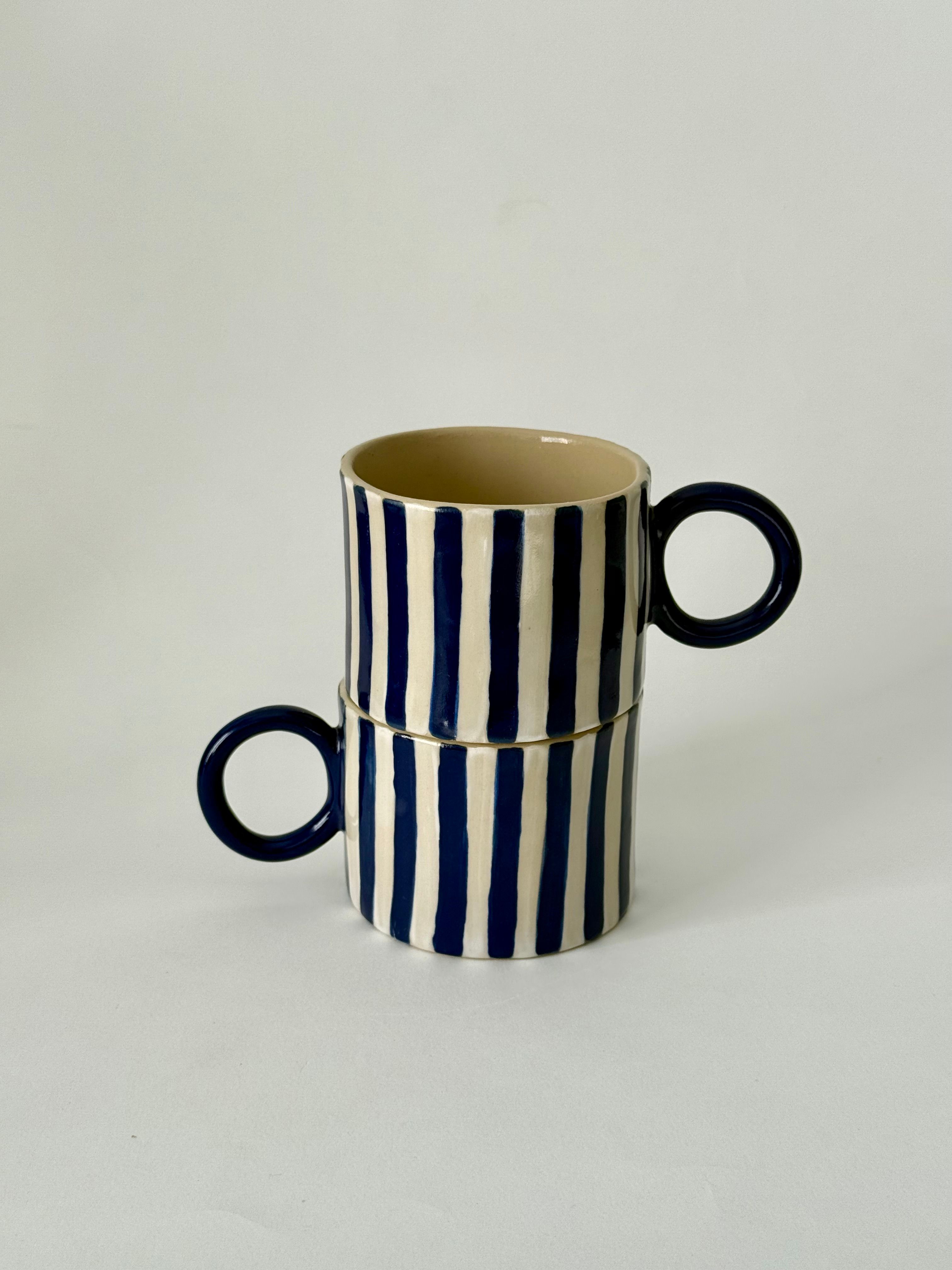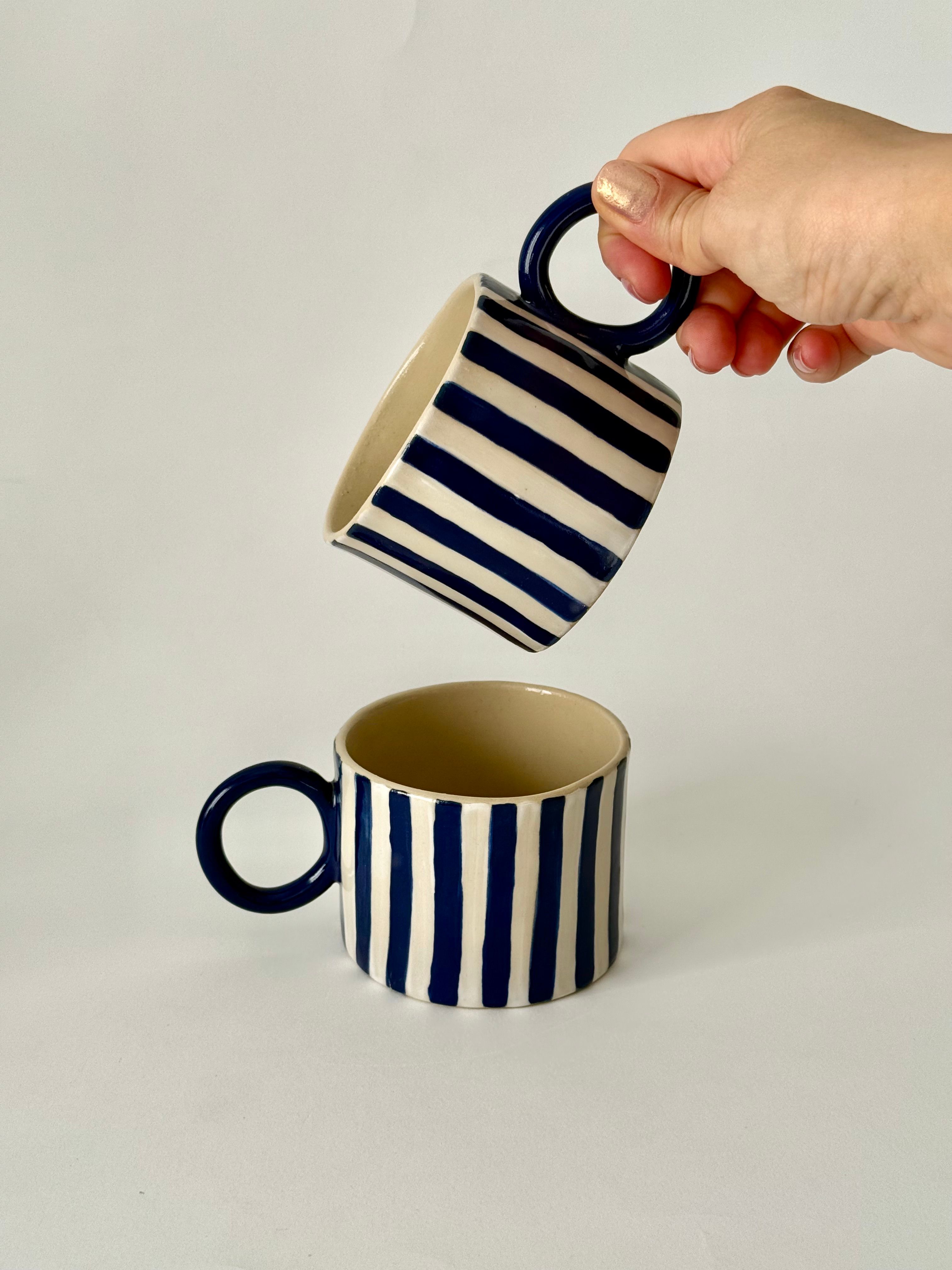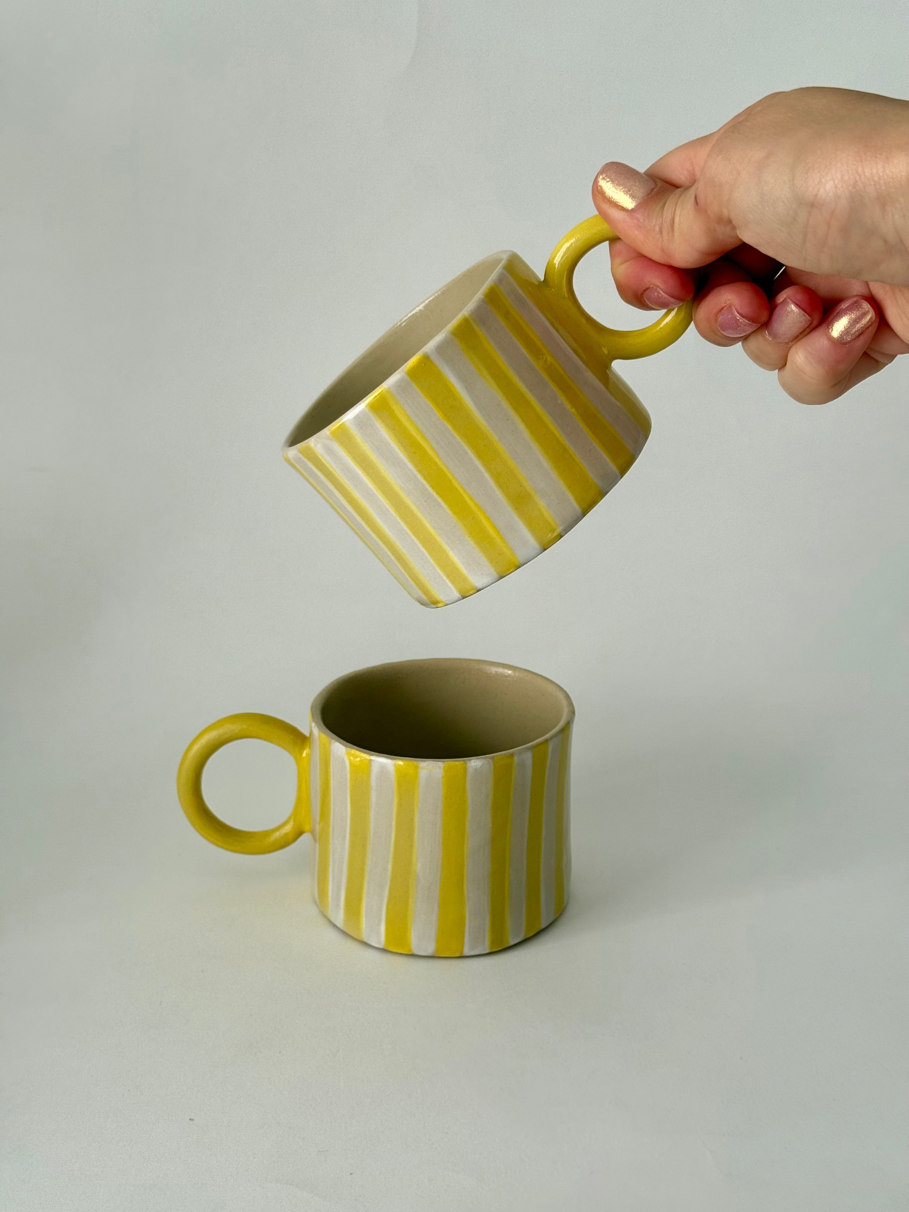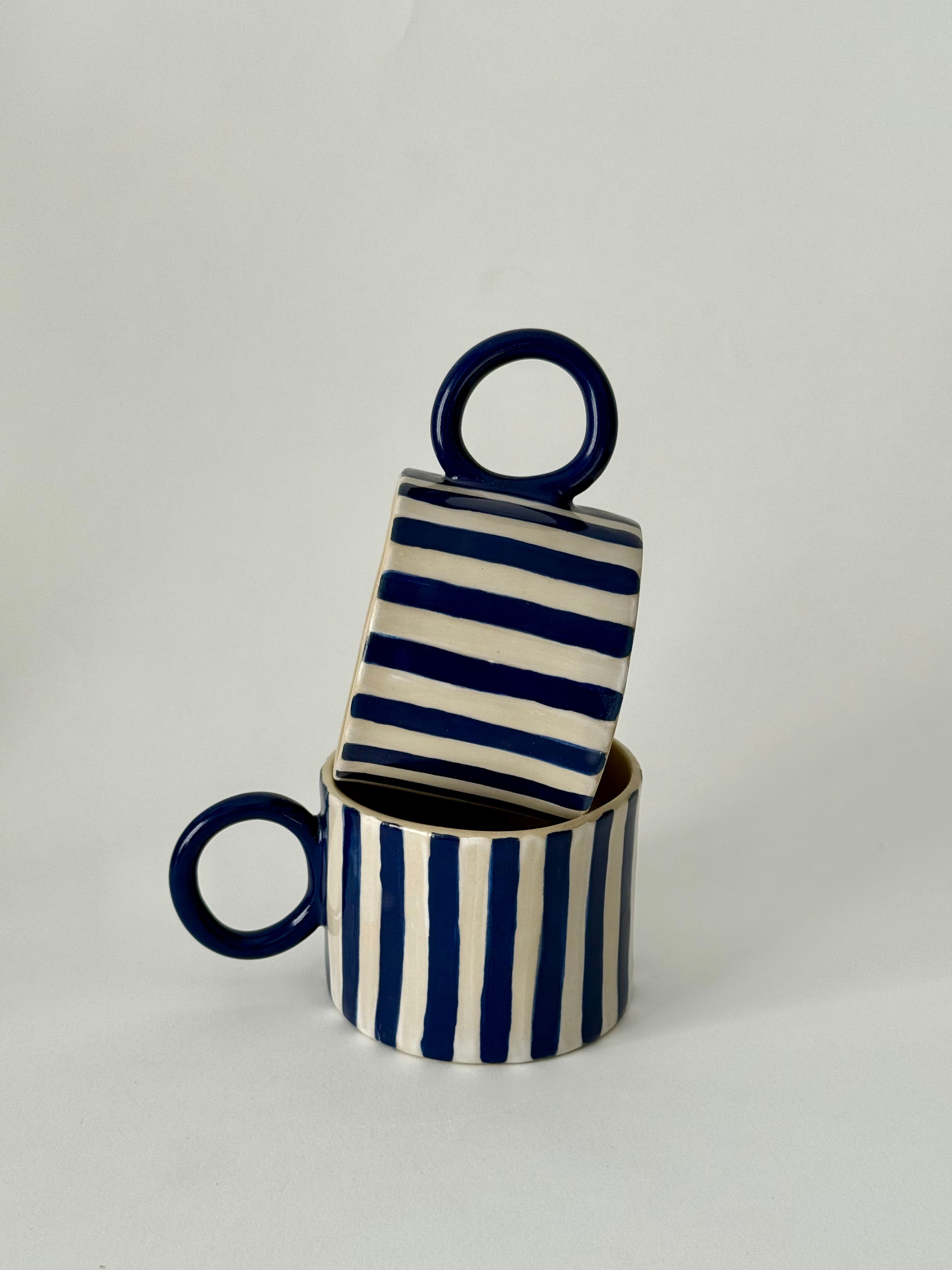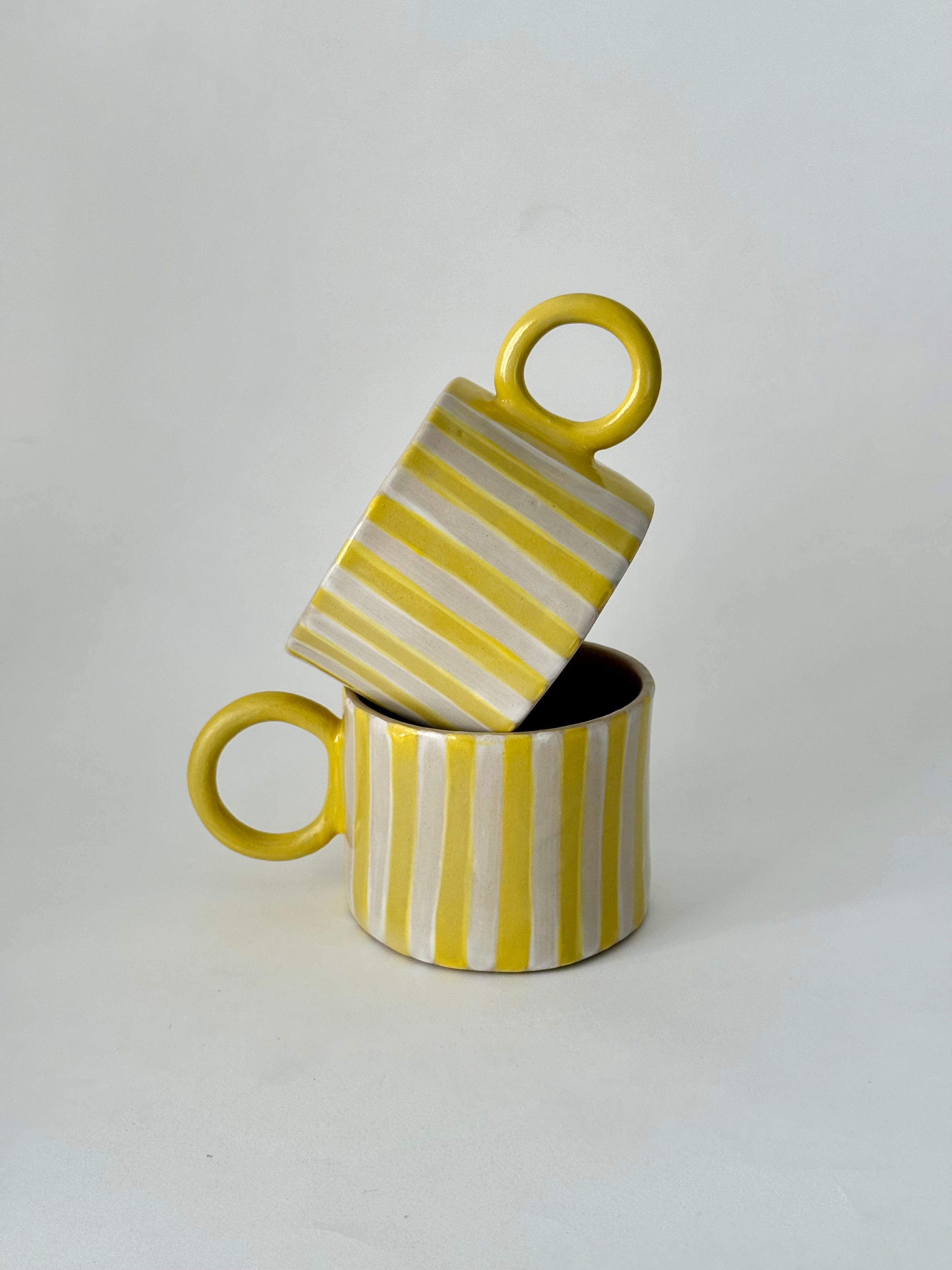 Με τις κάθετες ρίγες της και το παιχνιδιάρικο στρογγυλό χερούλι, έχει retro αλλά και μοντέρνο χαρακτήρα. Είναι ιδανική για όσους αγαπούν τα μικρά, όμορφα αντικείμενα που δίνουν στυλ στην καθημερινότητα — είτε για τον πρωινό καφέ είτε απλώς για να στολίζει το ράφι της κουζίνας σου. 💛💙