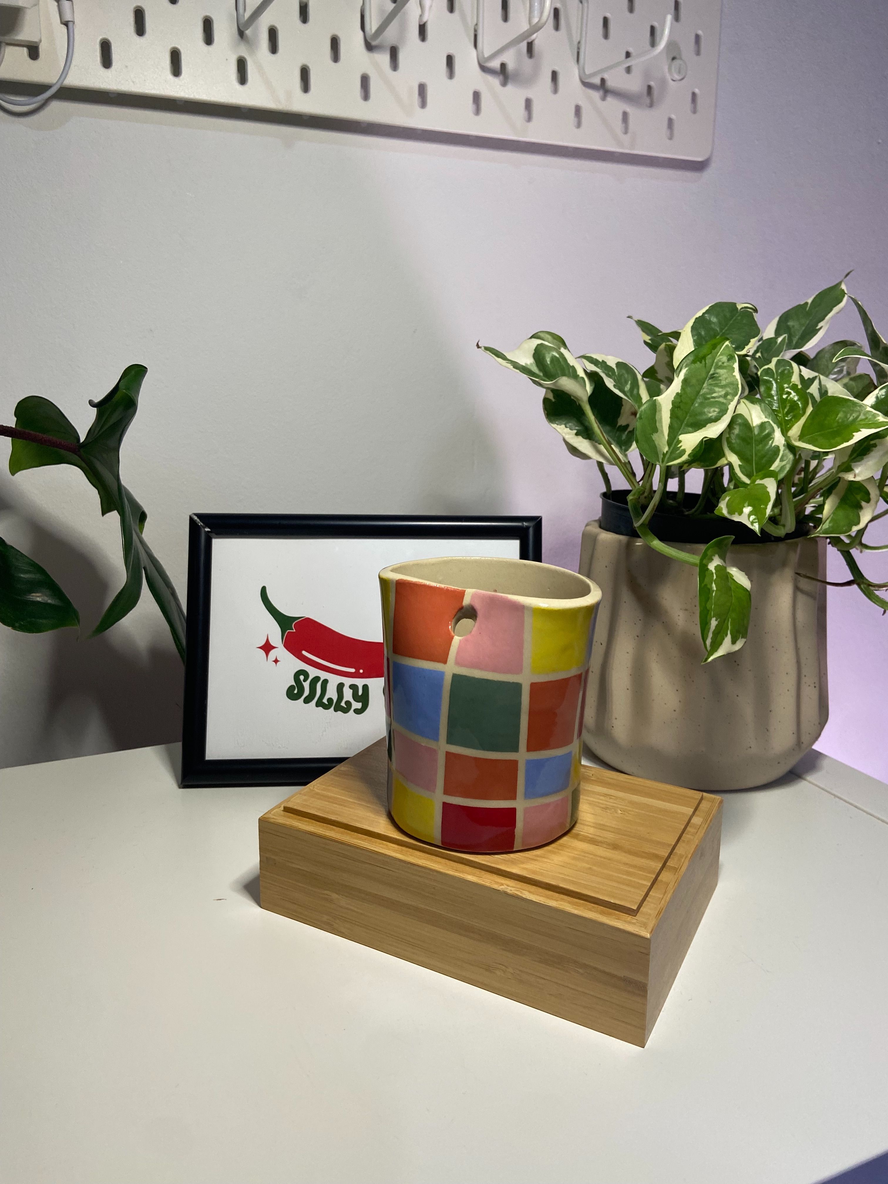 Η Tutti Frutti Freddo έχει σχεδιαστεί ειδικά για κρύα ροφήματα και διαθέτει τρυπούλα για καλαμάκι — γιατί είμαστε και πρακτικοί και fun! Είναι ζωγραφισμένη στο χέρι και αυτά τα πολύχρωμα τετραγωνάκια θα σε κάνουν σίγουρα να χαμογελάσεις με τα ζελεδένια τους vibes και το mood που φωνάζει “το καλοκαίρι στο χέρι σου”. Ιδανική για κρύα ροφήματα όπως freddo, κρύο τσάι και iced lattes.